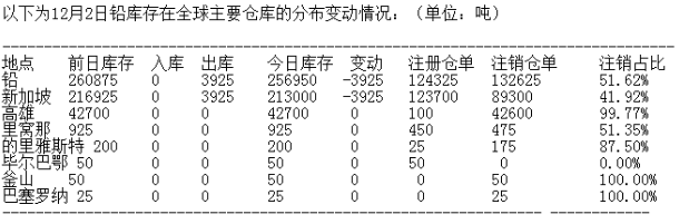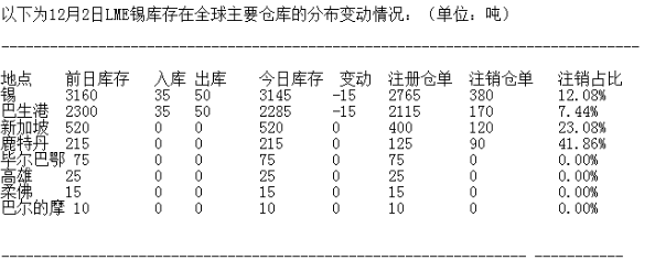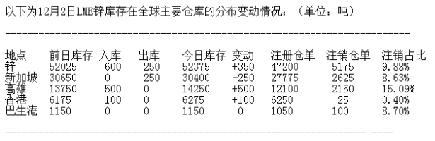 LME 12月2日有色金屬庫(kù)存分布情況