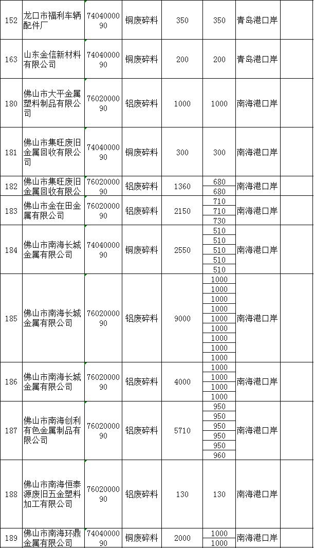 中國(guó)環(huán)境部下屬的中國(guó)固體廢物和化學(xué)制品管理局在明年首批配額中公布了270,885噸高級(jí)銅廢料和275,465噸鋁廢料的進(jìn)口配額。