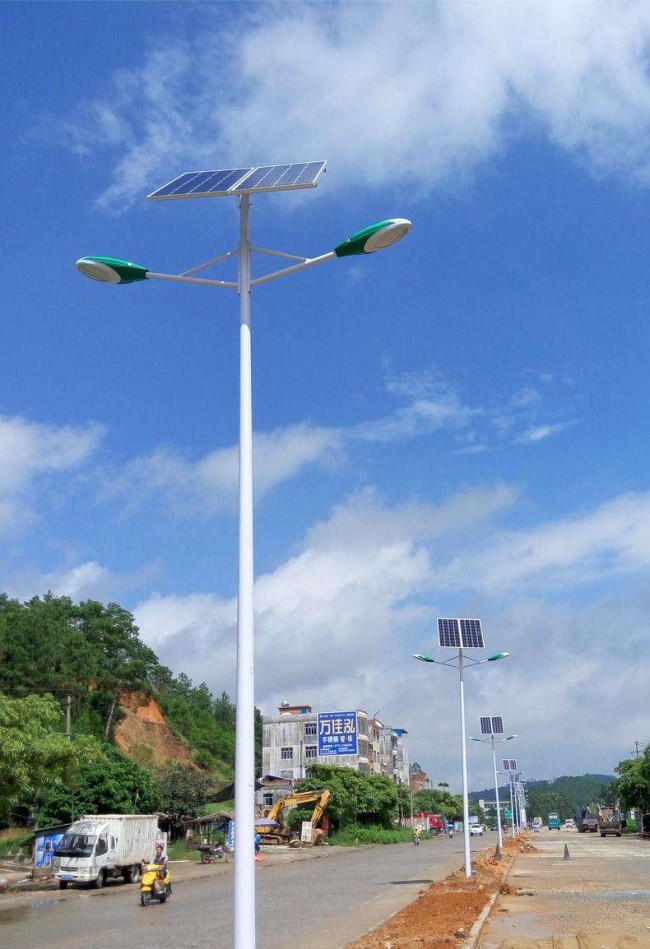 太陽能路燈就是以照明為主,環(huán)保、節(jié)能為目的制作的采用高效單晶(多晶)硅太陽能電池供電,采用免維護密封型蓄電池貯存電能,用高效節(jié)能燈照明,發(fā)光效率高、亮度大,并采用先進的充放電和照明控制電路,光敏控制具有性能可靠、安裝方便、無需專人控制和管理。直流供電,無需鋪設電纜電線,無需交流電能和電費,節(jié)能、經(jīng)濟、環(huán)保,實用(保證連續(xù)陰雨天3-7天能工作),壽命長(太陽能電池可用15~20年、蓄電池可用3~5年),是未來戶外照明的發(fā)展方向。