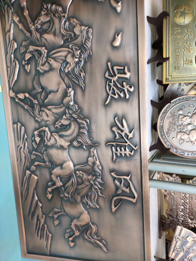 純銅純鋁雕刻屏風(fēng)背景墻,銅浮雕壁畫以其特有的金屬性質(zhì),解決了木制品的缺點(diǎn),能夠經(jīng)受戶外的風(fēng)吹雨淋而不變質(zhì),能夠有效的防火防潮防蟲蛀,好的耐候性,10年不變色。純銅雕刻屏風(fēng)背景墻,銅鋁浮雕壁畫經(jīng)過精雕細(xì)琢,既呈現(xiàn)出現(xiàn)代氣息,又不失古典韻味,融中西文化于一體,呈現(xiàn)出古典與現(xiàn)代的美感。