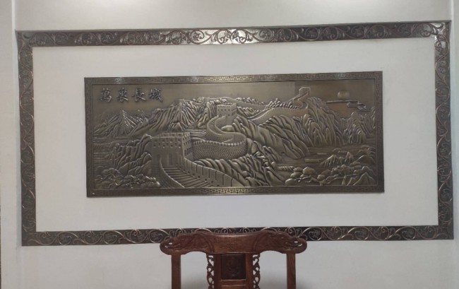 日常生活中不是缺少美,而是缺少創(chuàng)造力的美,只要有創(chuàng)新,很枯燥無趣的一樣?xùn)|西也可以打造得生命力十足。純銅純鋁雕刻屏風(fēng)背景墻,銅浮雕壁畫的設(shè)計(jì),雕刻線條的點(diǎn)綴,讓原本單調(diào)的壁畫多了一份典雅和魅力。