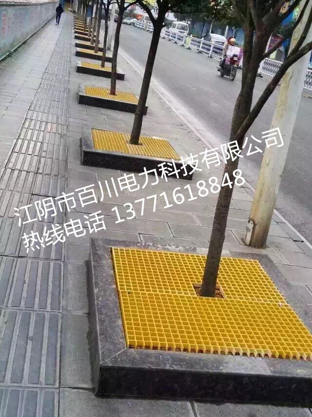 玻璃鋼護樹板以玻璃鋼格柵為主體,按樹木的大小切割尺寸,配以卡扣固定而成,有綠色、灰色、黃色等多種色系選擇,能有效保護樹木被踩踏,還能與道路周圍環(huán)境融于一體,形成一道亮麗的風景。