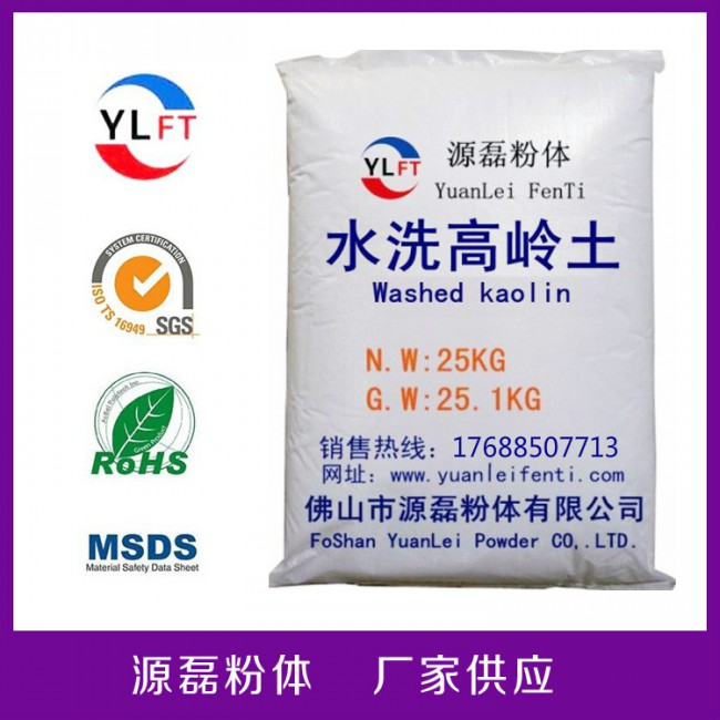 水洗高嶺土特點;具有結晶好,純度高,粒度細,吸油量適中。遮蓋率強,分散點,在膠料中易分散,加工容易,膠料表面平滑,與炭黑并用時有利于炭黑在膠料中分散。