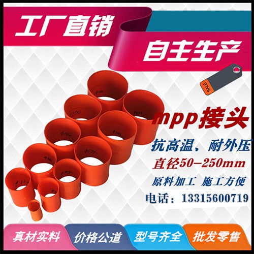 MPP電力管接頭: MPP電力管接頭是由MPP*加工而成,主要起到連接MPP電力管CPVC電力管的作用,它省卻了原有的電力管的笨重連接和熔接。減少了工作時(shí)間**了工作效率。 電力管接頭規(guī)格:50#、63#、75#、90#、100#、110#、110#、116#、125#、140#、150#、160#、167#、175#、180#、185#、192#、200#、203#、210#、219#、216#、225#、235#、250#、315#
