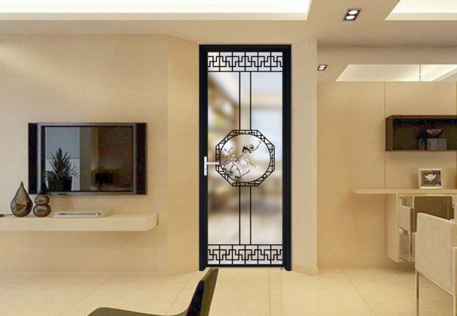 新款簡約格條窄邊框鋁合金平開門特點: