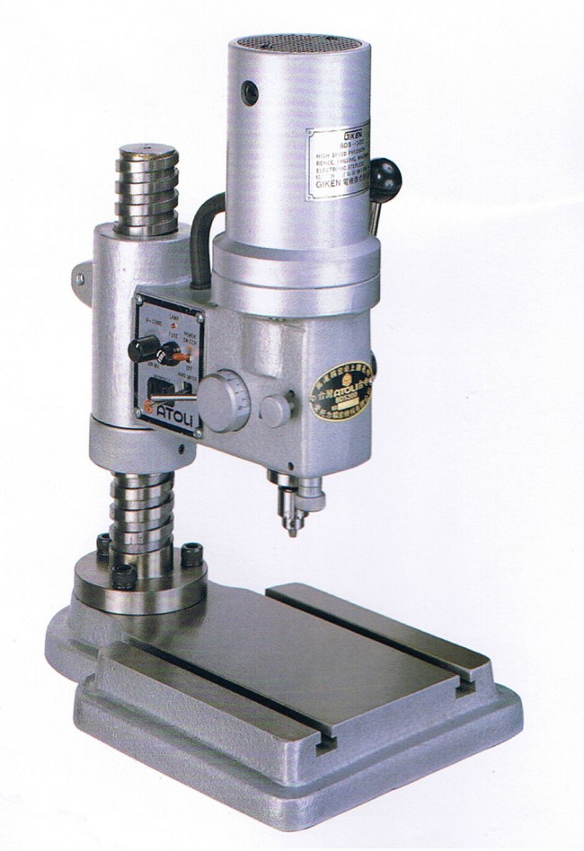 BDS-300 高速精密桌上鑽孔機(jī) 用途: 眼鏡、錶、電子、黃金、銅、鋼、鐵、各種精密金屬製品鑽孔都可使用。 優(yōu)點(diǎn): ● 各部都經(jīng)過高度精密加工 、 最適於精密的鑽孔作業(yè)。 ● 打擊調(diào)整專門用於細(xì)微的調(diào)整上 、 為操作簡單的一種把手。