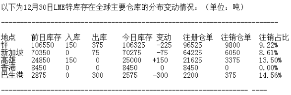 4. 鋅庫存106325噸,減少225噸。
