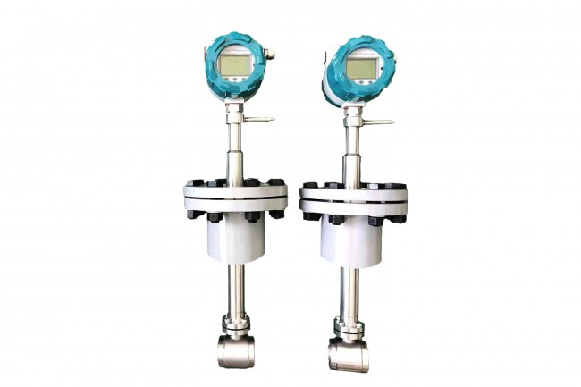 按國際標準化組織IS07145(在環(huán)形截面封閉管道中的流體流量測定—在截面一點的速度測量法),采用埋入壓電晶體的渦街測速探頭,插入大口徑工業(yè)管道內,將卡門旋渦頻率轉換為與流量成正比的電流或電壓脈沖信號或4~20mADC電流信號。