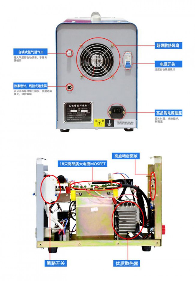 本焊機(jī)可在幾十毫秒內(nèi)完成焊絲和工件熔接過程,所以就工件基體來說,發(fā)熱較少,焊點(diǎn)以外的材料溫升小,不會(huì)產(chǎn)生退火、變色現(xiàn)象。由于每個(gè)焊接脈沖產(chǎn)生的熔池體積小于2mm3,其形成的應(yīng)力也較小。雖然一項(xiàng)焊接需要很多個(gè)熔池組合起來,但由于焊點(diǎn)的應(yīng)力方向分散,工件受到的集中應(yīng)力較小,所以焊接后工件不變形、不變色(焊接完可以直接觸摸)。