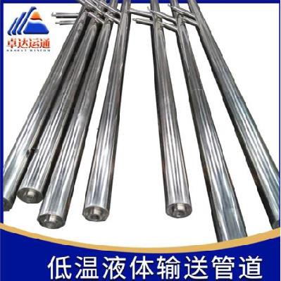 (二)簡述:真空管由內(nèi)管、外觀以及多層絕熱材料組成,夾層內(nèi)多層絕熱材料復(fù)合而成,以減少輻射傳熱;并將夾層抽成高真空狀態(tài),以降低對流傳熱;內(nèi)外管之間用低導(dǎo)熱系數(shù)材料隔離,以減少固體傳熱,從而把內(nèi)管冷量損失控制到更低限度,充分滿足低溫液體(LOX、LIN、LAr、LH2、LHe、LNG)等長距離輸送,這樣稱為高真空多層絕熱低溫液體輸送管道(簡稱真空管)