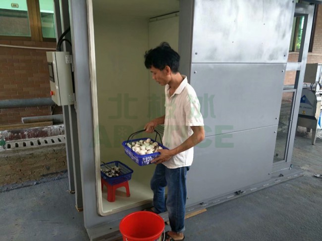 在我們的真空預冷機還未誕生使用之前,我們一直采用的都是傳統(tǒng)的冷庫預冷,然而我們的冷庫預冷有很多弊端;1.預冷時間長(從進庫到出庫需要8-12小時左右) 而預冷機只需要短短的20-30分鐘左右(可以實現(xiàn)打冷裝車出售) 2預冷效果:冷庫預冷是靠熱傳遞而實現(xiàn)的預冷效果;要想菜心溫度達到理想的目標值,那么這個預冷過程是由外向內(nèi)的一個過程,散葉的蔬菜到?jīng)]多大問題,而遇到甘藍.包菜.娃娃菜等包得比較緊的蔬菜,就算預冷到8-12小時也不一定能達到目標值,就算達到目標溫度,時間肯定會延長,從而菜的表皮也可能會有不同程度的凍傷情況。 而真空預冷機是靠真空預冷的,當我們的物體處于一個密閉的空間時,靠真空泵不斷把里面空氣吸走,當真空箱體達到負壓的時候,我們水的蒸發(fā)點就會降低,從而通過蒸發(fā)蔬菜葉片上的水分和不斷吸走蔬菜縫隙中的熱量而達到預冷效果;由于這一過程處于真空狀態(tài)下,可以殺菌和抑制細菌生長,修復機械傷等。3功耗:冷庫制冷面積大,預冷時間長,耗電量不言而喻肯定很大。而真空預冷機面積相對小,預冷時間快,儲存無需長時間開啟冷庫,或者可以直接發(fā)貨,可以大大節(jié)約用電量。 機動性:冷庫是不能移動,而真空預冷機不一樣,它可以什么地方需要出現(xiàn)在什么地方。