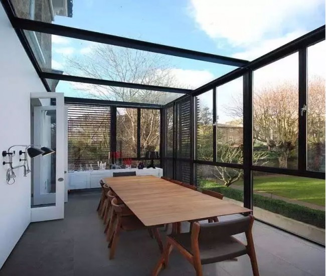 簡(jiǎn)約風(fēng)白色陽(yáng)光房用全鋁的陽(yáng)光房系統(tǒng),骨架用幕墻斷橋鋁材料,頂用夾膠中空玻璃,四面用斷橋鋁門(mén)窗,良好的隔音設(shè)計(jì)和中空玻璃,有效阻止室內(nèi)外熱量交替。內(nèi)置PVB膠片鋼化夾膠玻璃,即使破碎,也不會(huì)對(duì)人體造成傷害,同時(shí)可吸收99.6\%紫外線(xiàn)。具有隔音、隔熱、通風(fēng)、遮陽(yáng)、防塵、防水等功能。