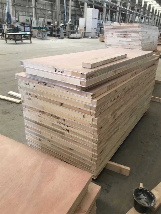 3)門扇面板:由二塊飾面膠合板組成,與門扇芯板、骨架緊密膠壓組成一個(gè)整體門板。在結(jié)構(gòu)上實(shí)現(xiàn)“對(duì)稱原則”和“奇數(shù)層原則”,使產(chǎn)品結(jié)構(gòu)對(duì)稱、應(yīng)力均勻、形狀尺寸穩(wěn)定。