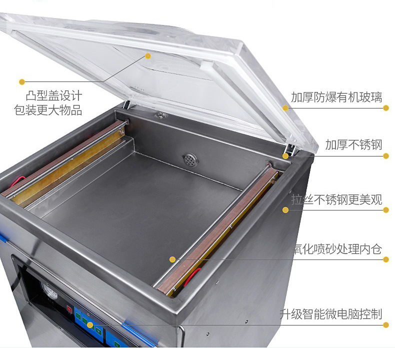 單室400真空包裝機(jī)為半自動(dòng)真空設(shè)備,只需按下真空蓋即自動(dòng)按程完成真空、封口、印字、冷卻、排氣的全過程。適用于各類食品、藥品、土特產(chǎn)、水產(chǎn)品、化工原料等各種固體、粉狀、糊狀、液體,電子產(chǎn)品(半導(dǎo)體、電路板、電子成品等)及機(jī)金屬加工件的真空包裝,以防潮、防氧化變色。經(jīng)過包裝的產(chǎn)品可防止氧化,霉變、蟲蛀、受潮,可保質(zhì)、保鮮延長產(chǎn)品儲存期限。